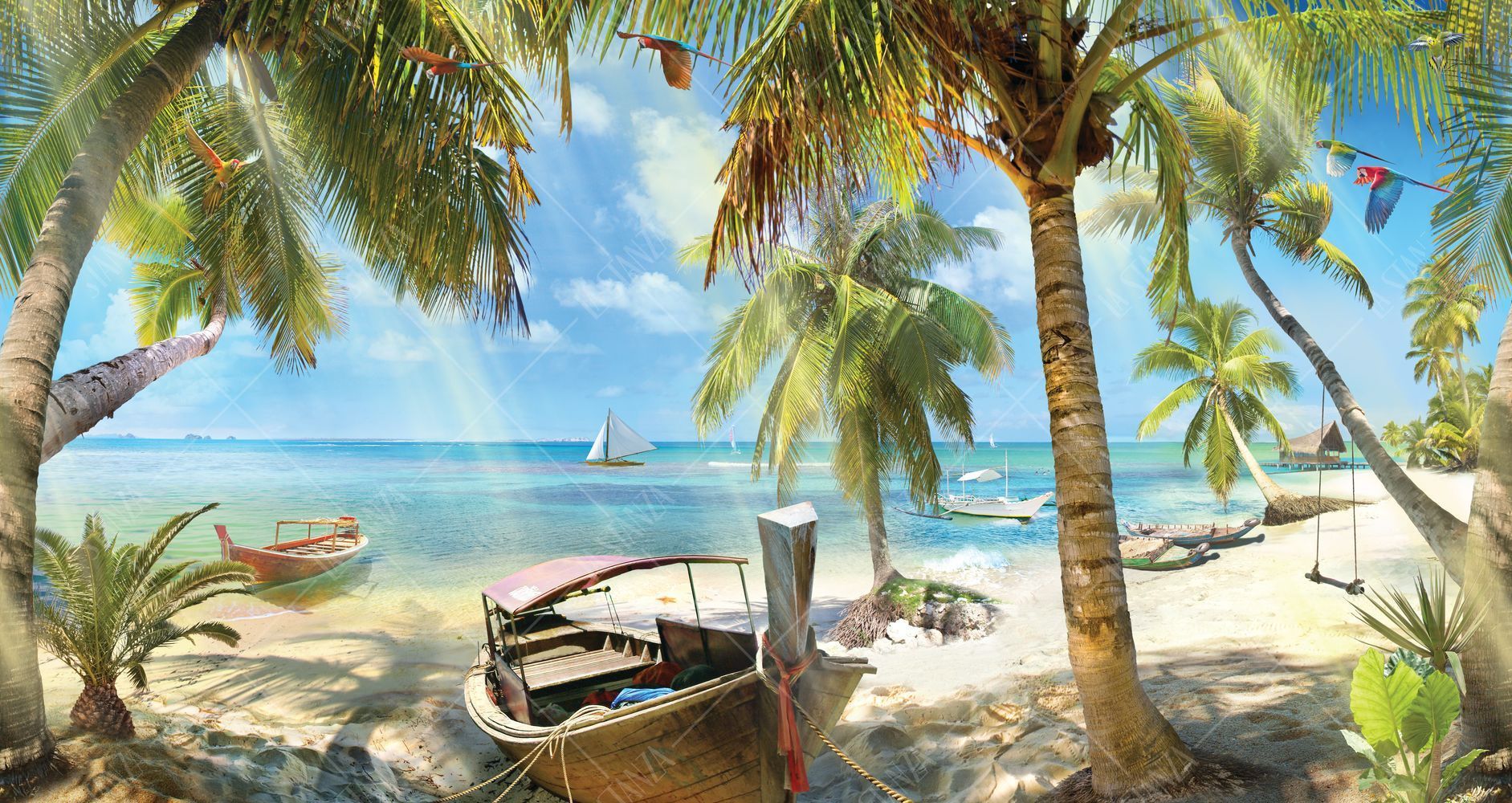 Море, пальмы, берег, лодка